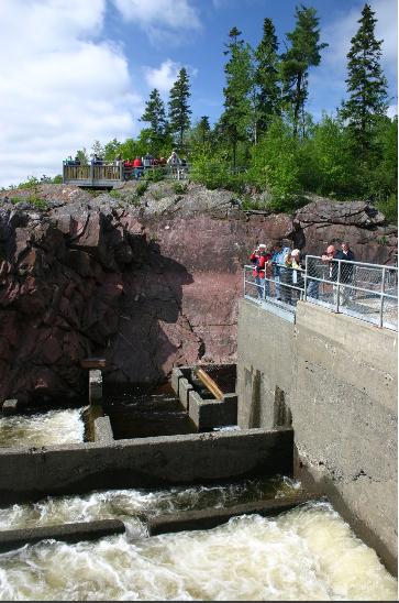 Exploits河上的三文鱼养殖是北美同类养殖中规模最大的,为了突出这特色,在纽芬兰和拉布拉多的温莎大瀑布温莎特设此中心。该中心位于“大瀑布”的Exploits河上,展出了大西洋鲑鱼的历史、生物学、生态学和栖息地。游客可以通过水下窗户看到肥硕的三文鱼逆流而上,到达产卵栖息地,还可以看到飞流而下的瀑布和筑巢的海鸥。该中心的亮点是较低的观测水平,在那里你可以进入水下河流体验,近距离观察“鱼王”向上游迁徙到产卵栖息地的过程。观赏完后,前往餐厅可享用这来自大自然的馈赠,品尝鲜美独特的三文鱼,也可以从礼品店购买当地制作的纪念品,以支持当地的工匠和手工艺者。