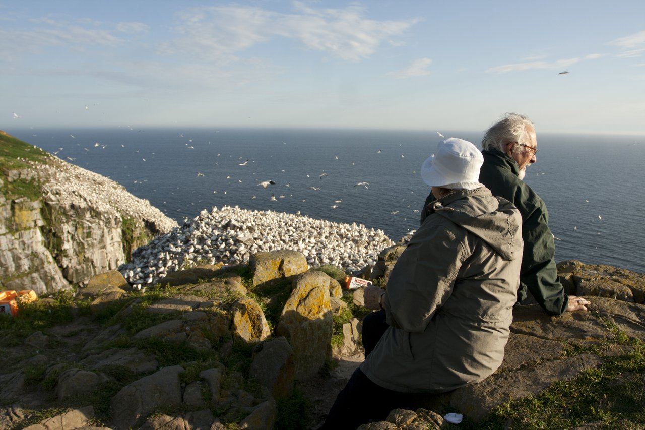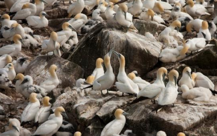 圣玛丽鸟类自然保护区(Cape St. Mary's Ecological Reserve)俗称鸟岛,是北美最大的海鸟栖息和筑巢地。七万多只大鸟把整个小岛和周围的悬崖壁覆盖成了白色,在这个宛如仙境的海角,栖息着成千上万的海鹦/善知鸟(Puffin)、北方塘鹅(Gannett)、崖海鸠( Common Murre)、厚嘴海鸦(Thick-billed Murre)、黑腿三趾鸥(Black-legged Kittiwake)及海雀(Razorbill)、角百灵(Horned Lark)。为什么北方塘鹅被称作“多情鸟”呢?谜底将由您亲眼揭开:您将目睹北方塘鹅那真真正正奇特美丽的爱恋方式:雌鸟和雄鸟面对面地展开双翼,然后,不断地摇头,用喙互相摩擦,或者用喙彼此梳理羽毛。最后,雌鸟和雄鸟一起昂首,喙指向天空,不断鸣叫,好像在对其它同伴宣布“我们结成夫妻了!”。当地人把这一场面形象比喻为“击剑”(法语 l'escrime)。北方塘鹅则以它独特而著名的“击剑式接吻”,而获得“多情鸟”的荣誉称号。